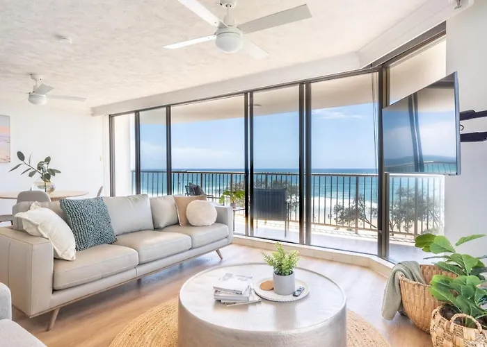 ゴールドコーストの中心に位置するベッドルーム2室のNew! Beachfront Bliss 2 Bed 2 Bath Stunning Ocean Views ゴールドコーストアパートから徒歩で25分離れたカスケード・ガーデンズへ行きやすいです。 ゴールドコーストから450メートル離れた所に位置する広々とした114m²のアパートで、顧客はプールを利用できます。